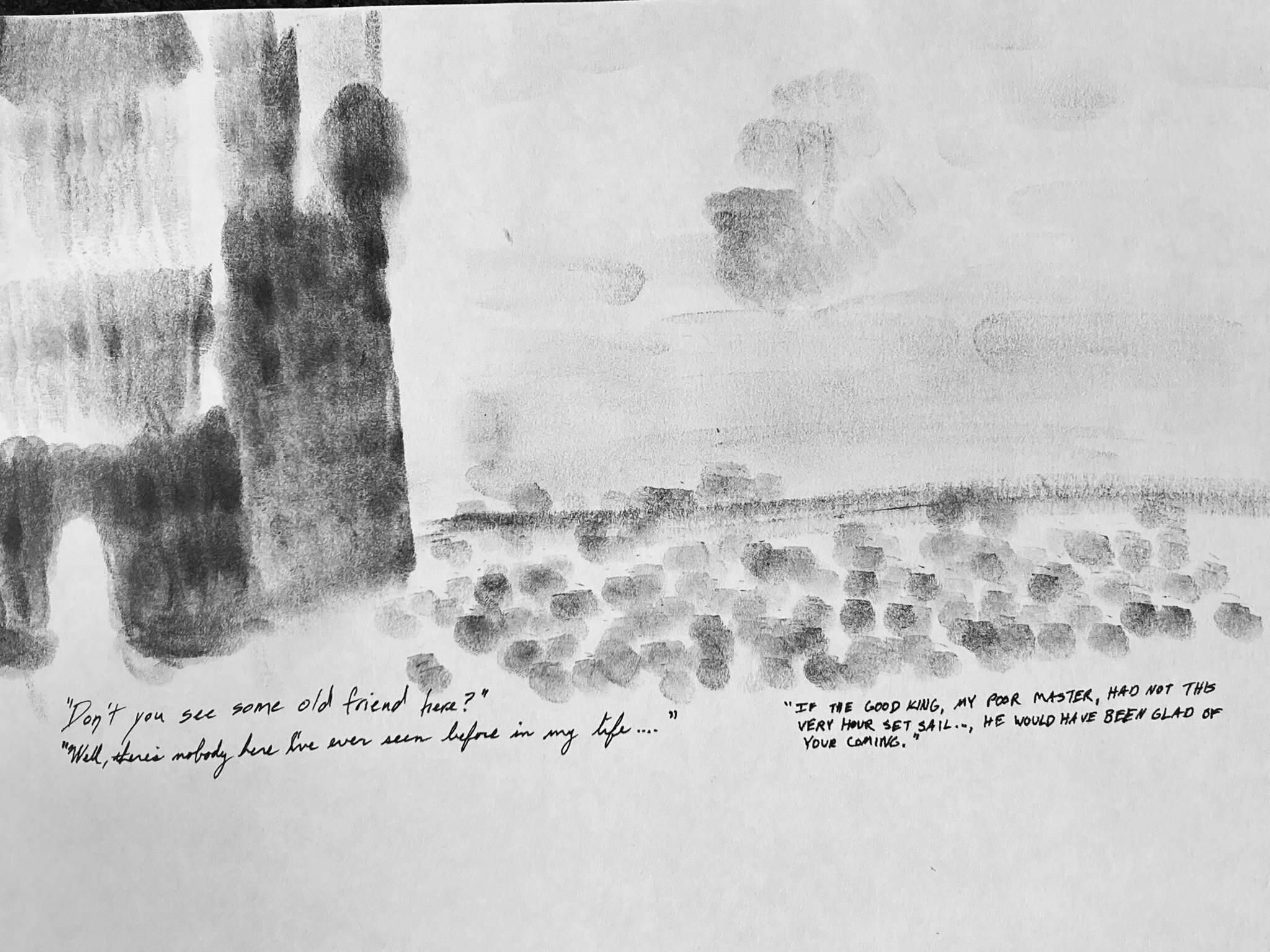 For chapter 3, I attempted a couple things that... didn't really translate into art the way I hoped, haha. It's supposed to be the scene of Caspian's sailing away, with a bit of light-dark contrast to suggest the lost opportunity to follow the first sign.