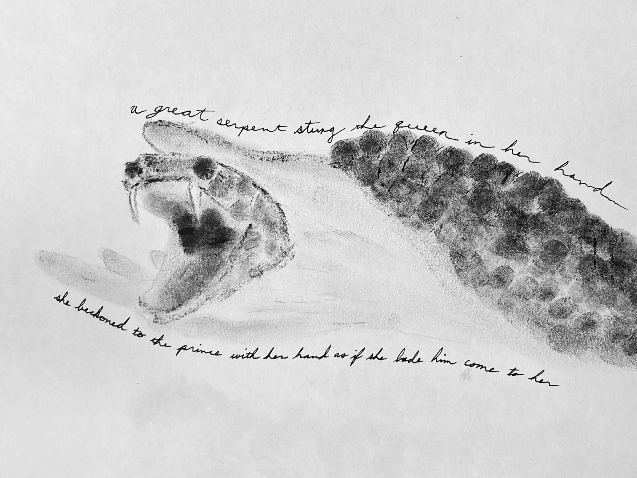 Her forked tongue, fanged tines
